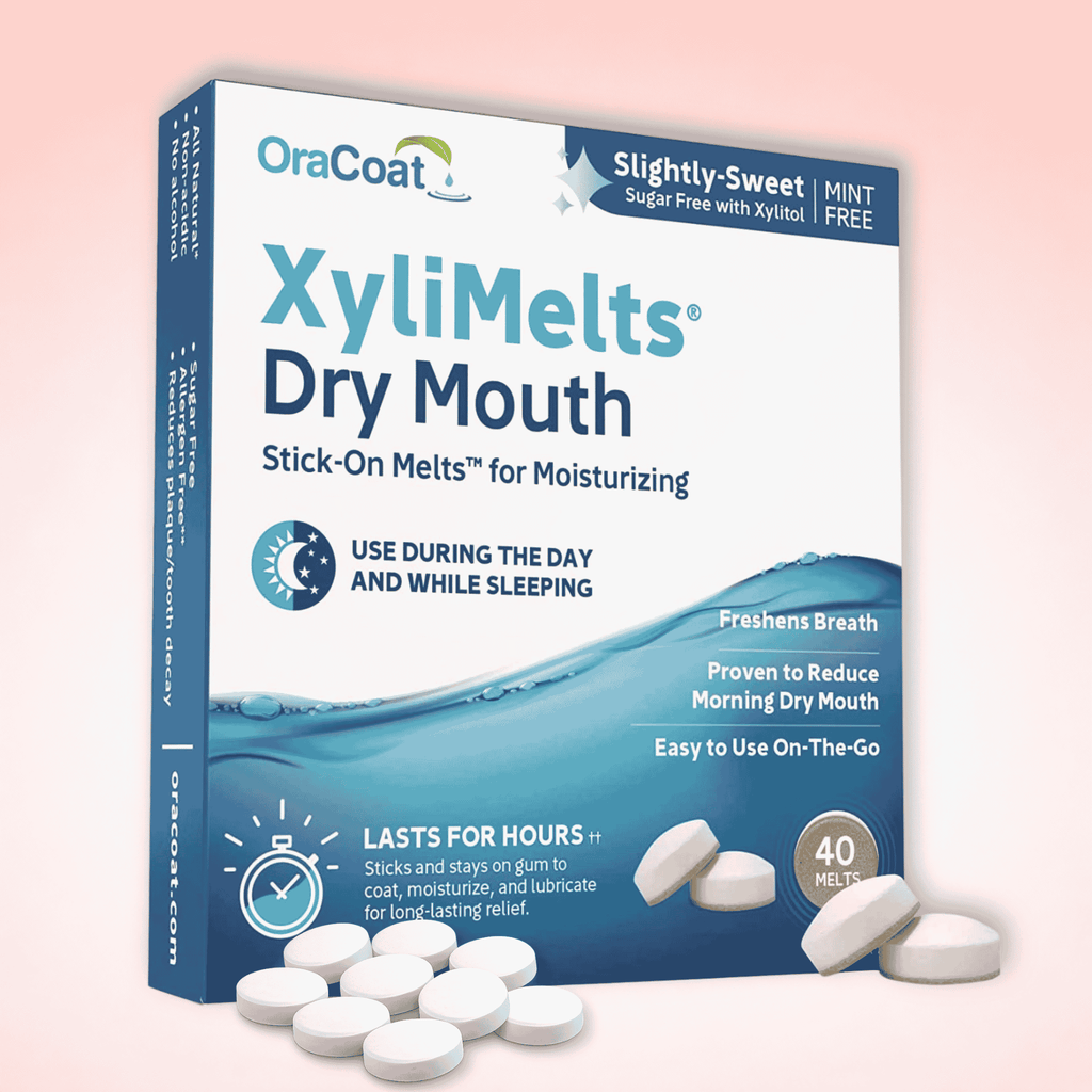 XyliMelts® are small, oral-adhering discs designed to slowly dissolve over time. They are typically placed against the gum or inner cheek and allowed to dissolve gradually, including during sleep.